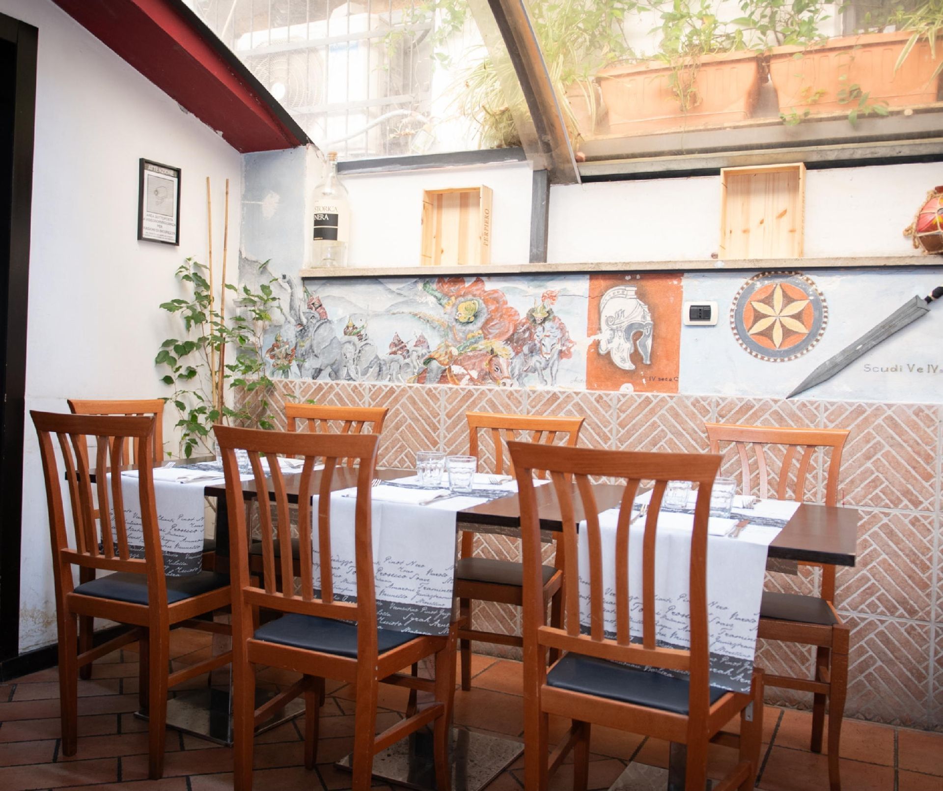 Además, para aquellos que prefieren cenar al aire libre, nuestra espaciosa terraza es una auténtica joya: con vistas al majestuoso Coliseo, ofrece a los huéspedes una vista impresionante, haciendo que cada experiencia culinaria sea aún más especial.